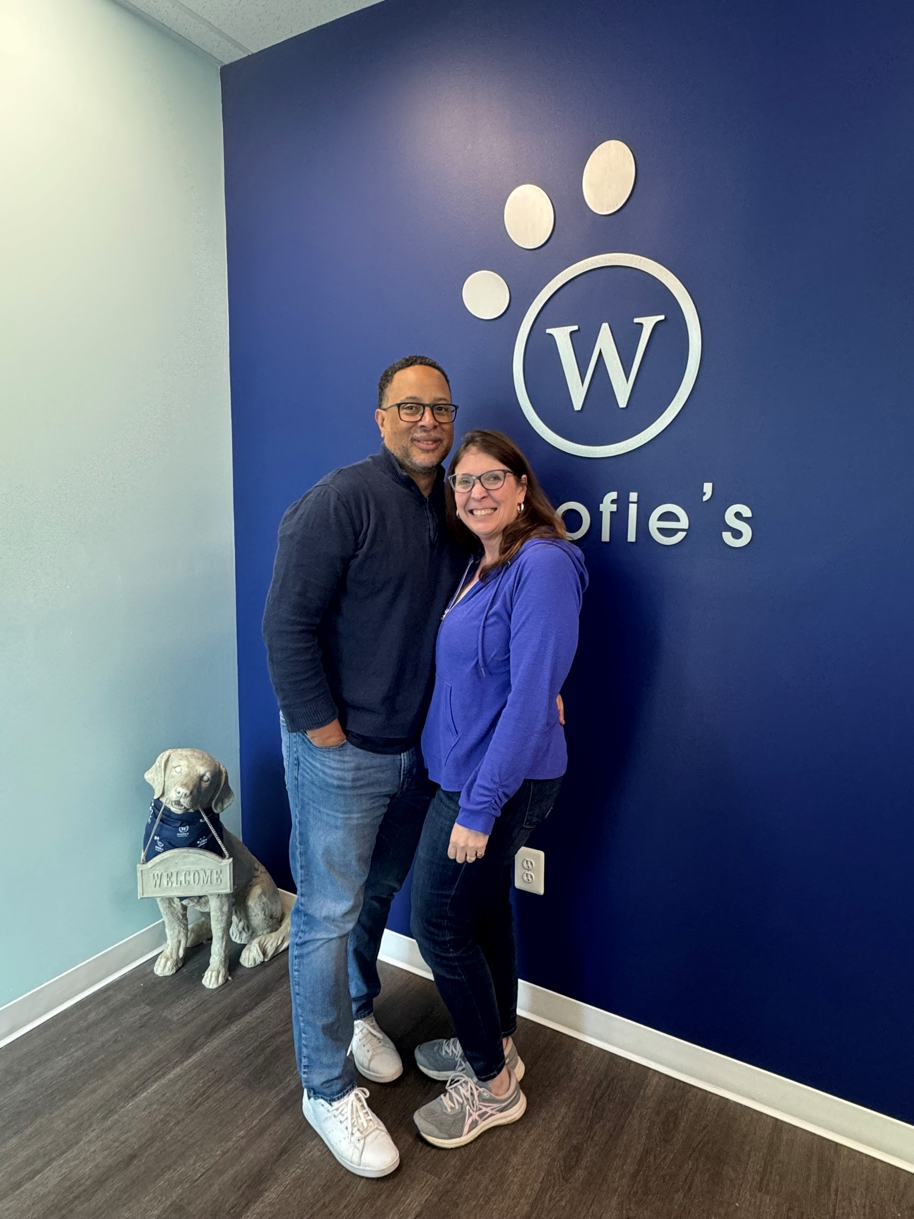 Welcome to Woofie’s® of Carmel! We are Ron and Mary Kay Dawson, proud franchise owners dedicated to providing exceptional pet care in our community. We’ve been married for 25 years and have always shared a deep love for animals, and it has led us to pursue our dream of working with pets.