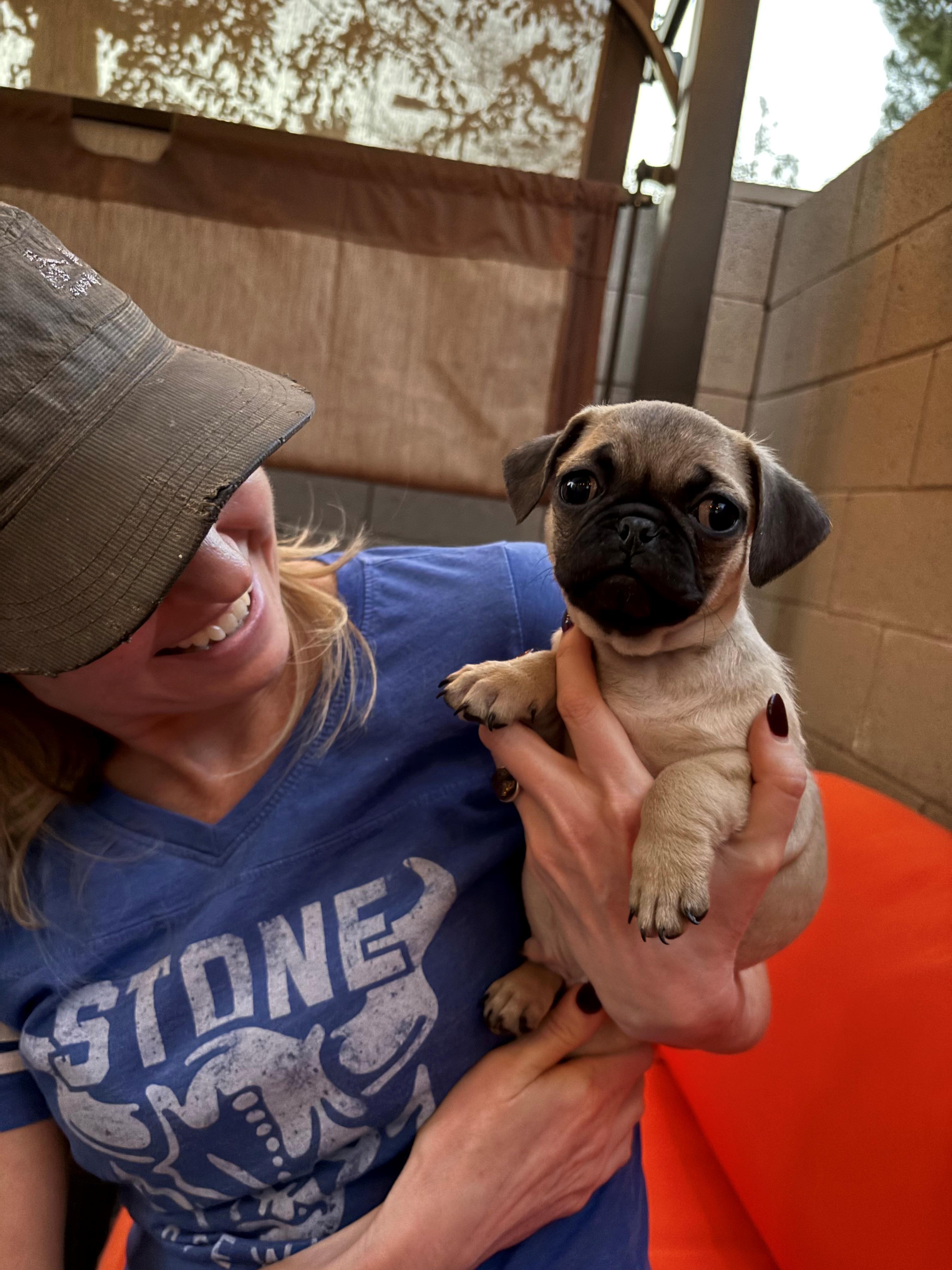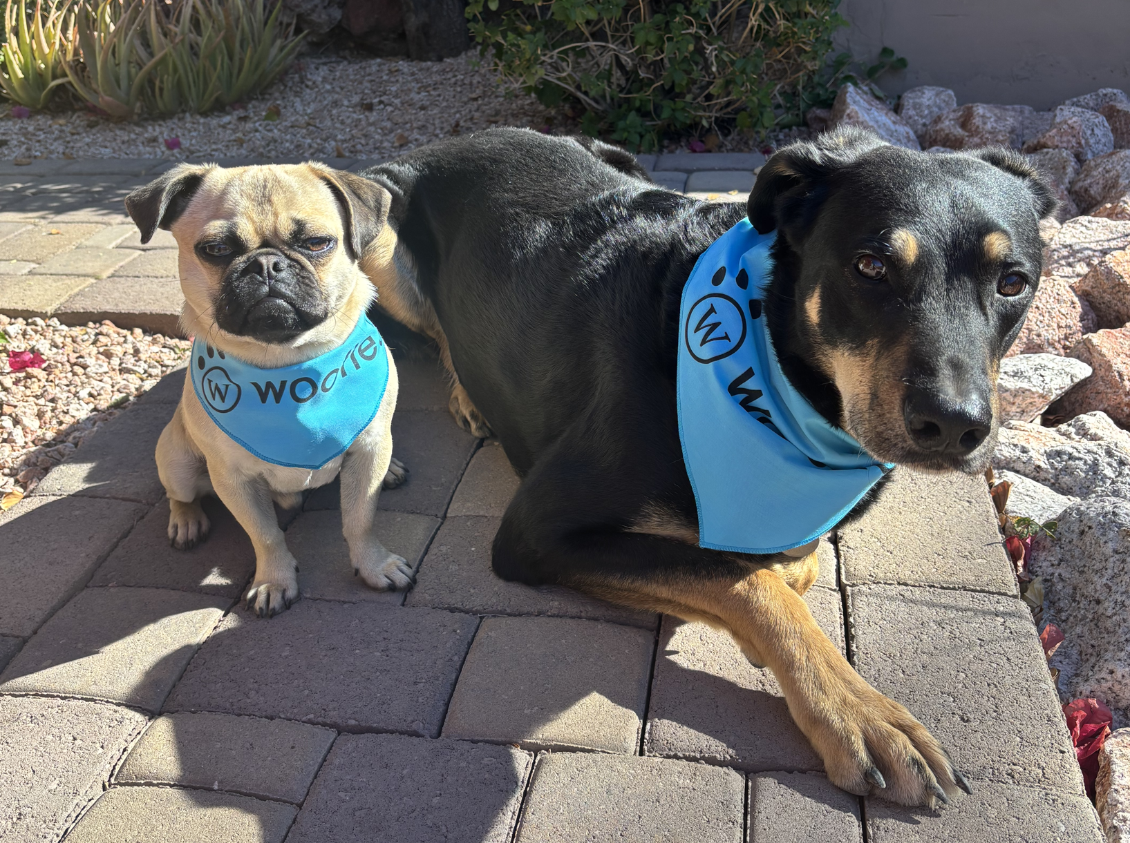 Today, Jill and her husband share life with “the twins,” a duo that couldn’t be more opposite if they tried. There’s Wrigley, a 75‑pound Black Lab mix with the energy of a linebacker, and Sir Remington (Remi), a 12‑pound pug who runs the household with the confidence of a CEO. Remi has, of course, promoted himself to Woofie’s® of Scottsdale & Paradise Valley’s Chief Mischief Officer—and also serves as the team’s unofficial security detail. (He takes both roles very seriously.)